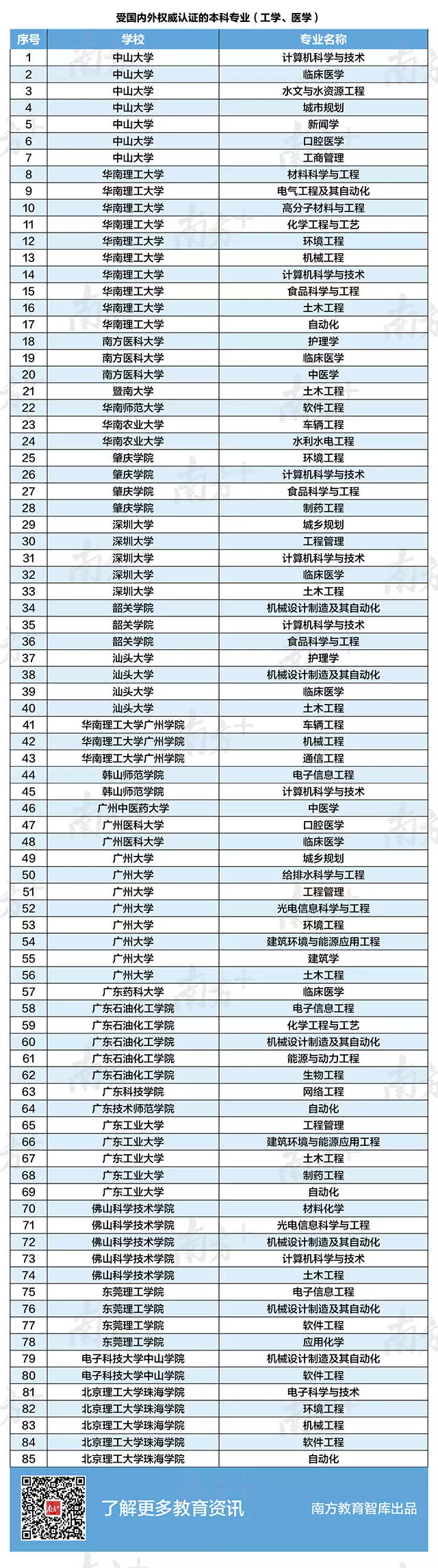 統(tǒng)計(jì)工學(xué)類和醫(yī)學(xué)類專業(yè)發(fā)現(xiàn),廣東共有85個(gè)專業(yè)獲得國內(nèi)外認(rèn)證,其中華南理工大學(xué)10個(gè)、廣州大學(xué)8個(gè)、中山大學(xué)7個(gè),位居全省前3位,理科考生可以作為參考。