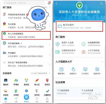目前,深圳實體社??ǖ某挚ㄈ丝赏ㄟ^“i深圳”APP、支付寶城市服務(wù)申領(lǐng)電子社???。未來,市民還可在微信城市服務(wù)、平安一賬通、建行、銀聯(lián)等多渠道上申領(lǐng)電子社保卡。