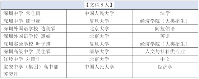 8名文科高分生報考院校集中在4所大學,分別為北京大學(3人)、清華大學(1人)、中國人民大學(2個)、復旦大學(2個),而報考北京大學的3人中,深圳外國語學校的邊美霖、惠婧已經(jīng)通過外語類保送考試,在高考之前已成功被北大錄取。在文科類學霸所選專業(yè)方面,經(jīng)濟學較為熱門,有3名學生選擇,占比近4成。