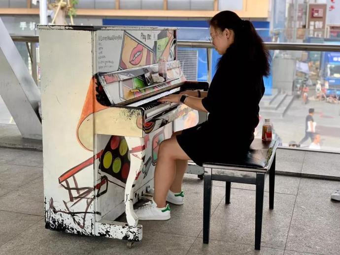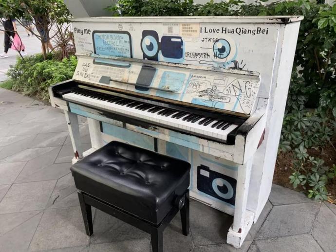 華強(qiáng)北街頭還擺放了公共鋼琴可供免費(fèi)彈奏