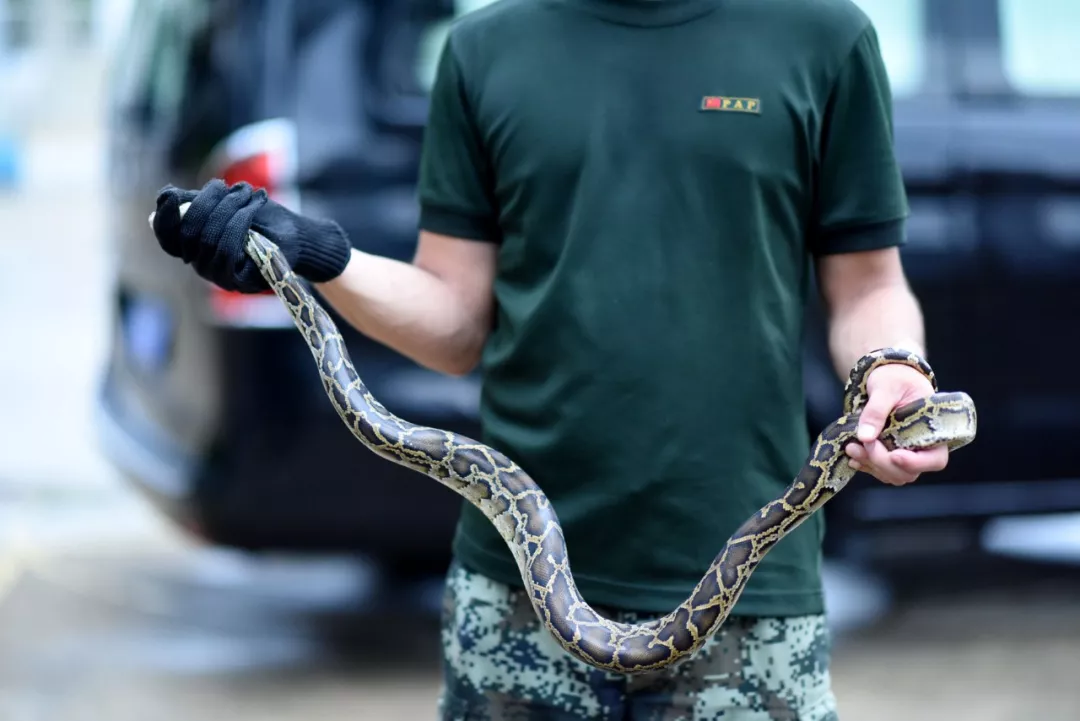 一條蟒蛇在居民們散步的路上被發(fā)現(xiàn)
