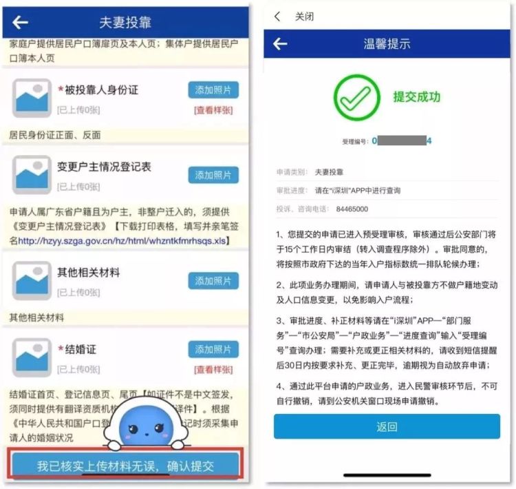 其具體操作流程:詳細(xì)閱讀告知書和辦理須知、選擇申請情形、填寫申請人信息、上傳材料并提交申請。操作提交成功后,市民請保持手機(jī)通訊暢通,受理編號、補(bǔ)正材料通知,審批結(jié)果等相關(guān)信息將通過短信告知,工作人員將通過系統(tǒng)后臺對申請資料進(jìn)行審核。審核通過的,將通知申請人通過預(yù)約方式攜帶申請材料(原件及復(fù)印件)到指定戶政窗口完成“一站式”辦理,群眾無需多次往返奔波。