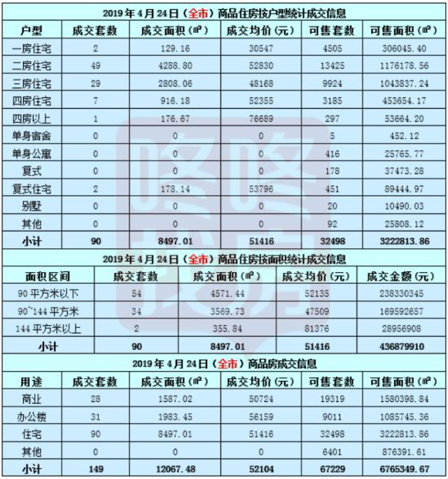 深圳商品(住)房成交信息表(4月24日)