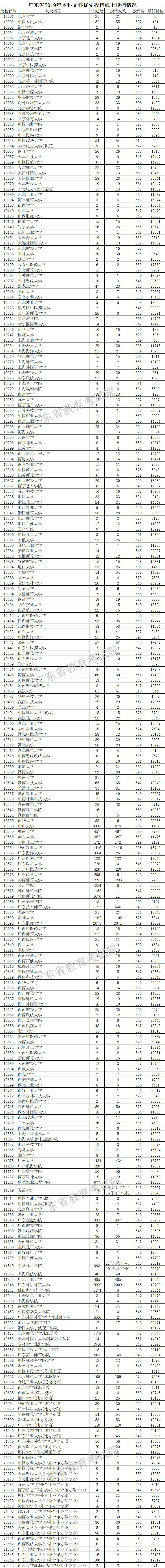 廣東省2019年本科文科優(yōu)先投檔線上投檔情況