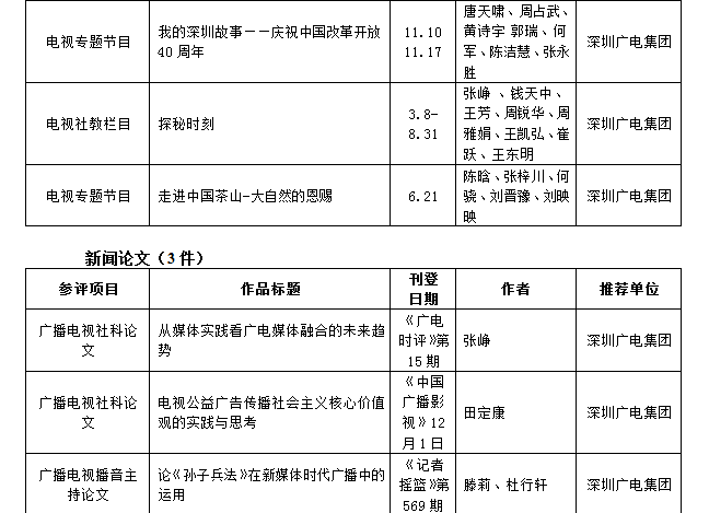 第26屆(2018年度)深圳新聞獎獲獎作品目錄