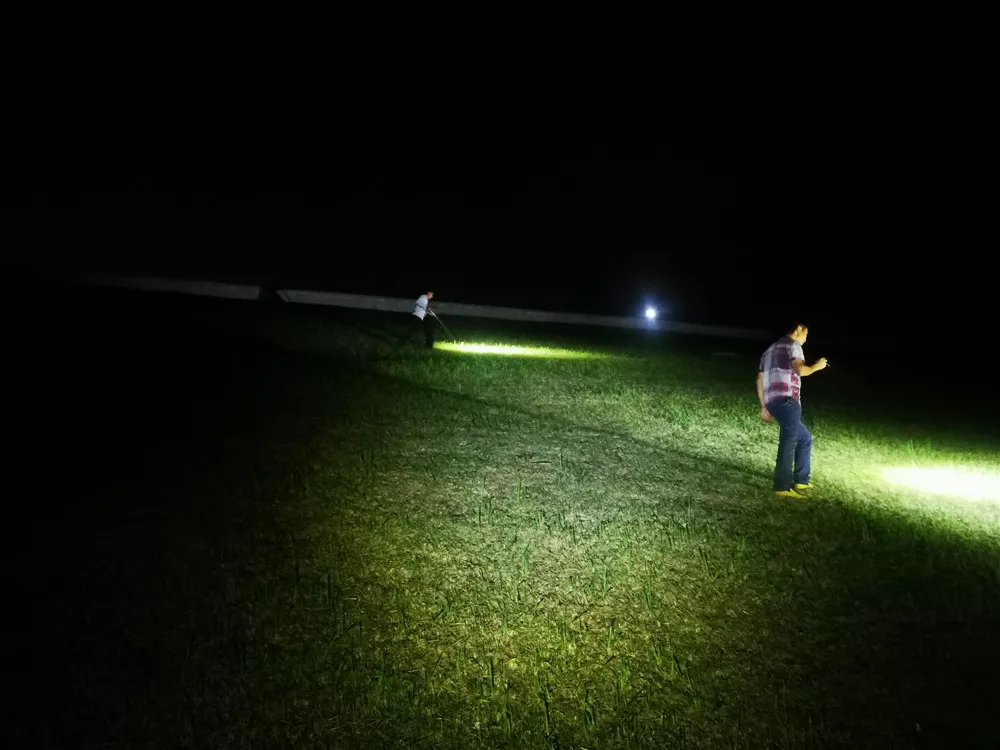 他們拿著手電筒對水庫進(jìn)行巡查