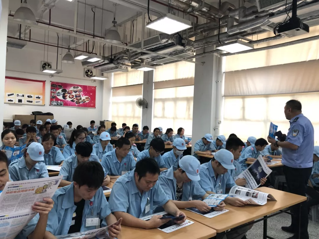 同時,反詐騙教育學(xué)院公開課走進梅林派出所轄區(qū)成豐電子廠,由反詐騙教育學(xué)院專職講師為廠里近500位員工普及反詐知識,并且組織工友們閱讀反詐騙教育學(xué)院???,提高他們的反詐騙意識。