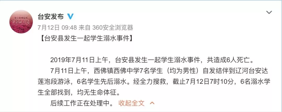 經當地政府部門證實,共有6名學生溺水身亡,其中有一對雙胞胎兄弟。遇難的6名學生均是西佛中學學生。