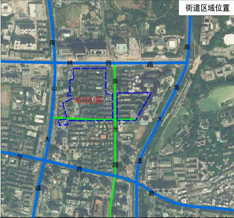 該規(guī)劃區(qū)緊臨深圳大學,處于桃園路南側,是南山區(qū)行政文體中心、高新技術人才創(chuàng)業(yè)基地的配套服務區(qū)。項目拆除用地面積為79449.5平方米,開發(fā)建設用地面積為55966.4平方米,計入容積率建筑面積448965平方米,其中,住宅220175平方米(包括33026平方米的保障性住房),商業(yè)33560平方米,辦公50000平方米,商務公寓140000平方米,配套設施5230平方米。