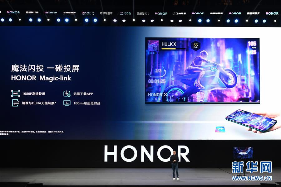 8月10日,華為榮耀總裁趙明在發(fā)布會(huì)上介紹榮耀智慧屏。新華社記者梁旭攝
