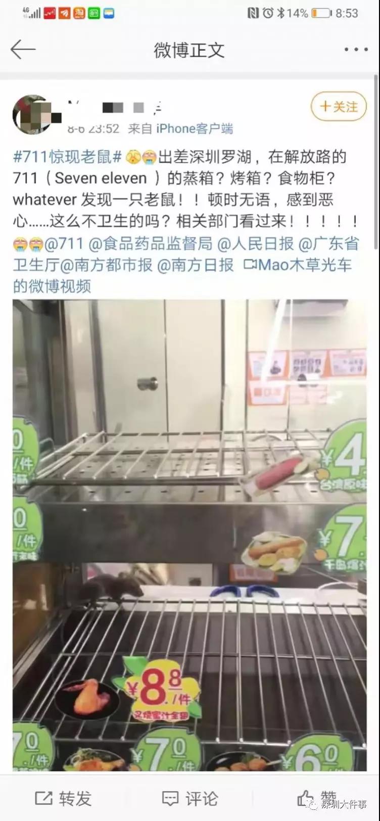近日,有網(wǎng)友爆料稱自己在羅湖解放路7-11便利店的熱柜中發(fā)現(xiàn)一只老鼠