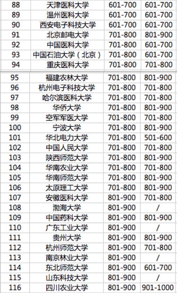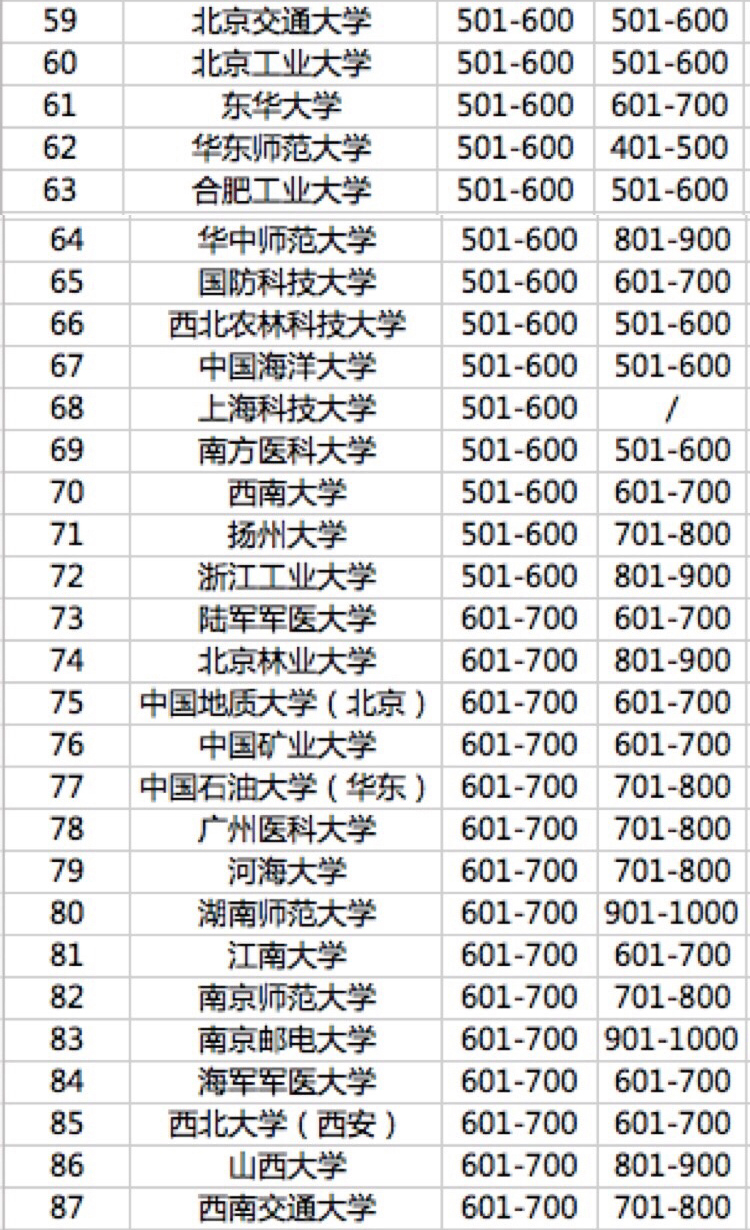 清華大學(xué)在中國內(nèi)地排名最高,位列全球第43名。上海交通大學(xué)的進(jìn)步尤其引人注目,今年首次躋身全球百強(qiáng),位列全球第82位,上海交通大學(xué)也成為繼清華大學(xué)、北京大學(xué)和浙江大學(xué)之后進(jìn)入全球百強(qiáng)的第四所中國大學(xué)。復(fù)旦大學(xué)、華中科技大學(xué)、中山大學(xué)和中國科學(xué)技術(shù)大學(xué)排在全球101-150名。中南大學(xué)、蘇州大學(xué)、東南大學(xué)、電子科技大學(xué)和武漢大學(xué)首次進(jìn)入世界200強(qiáng)。南開大學(xué)、山東大學(xué)、同濟(jì)大學(xué)首次進(jìn)入世界300強(qiáng)。深圳大學(xué)、南方科技大學(xué)、青島大學(xué)、福州大學(xué)、鄭州大學(xué)、南昌大學(xué)、江蘇大學(xué)、暨南大學(xué)今年首次入圍全球500強(qiáng)。上??萍即髮W(xué)、廣東工業(yè)大學(xué)等13所大學(xué)首次進(jìn)入全球1000強(qiáng)。