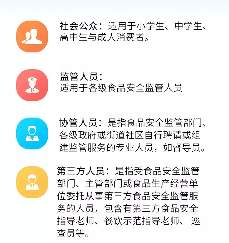 法人/負(fù)責(zé)人/股東、食品安全管理員、采購員、倉儲管理員、粗加工人員、烹調(diào)加工人員、面點(diǎn)糕點(diǎn)制作人員、專間人員、餐具清洗消毒保潔人員、傳菜服務(wù)人員、水果飲品制作人員、燒鹵熟食制作人員、食品驗貨崗位、食品留樣、送餐人員等15個崗位。