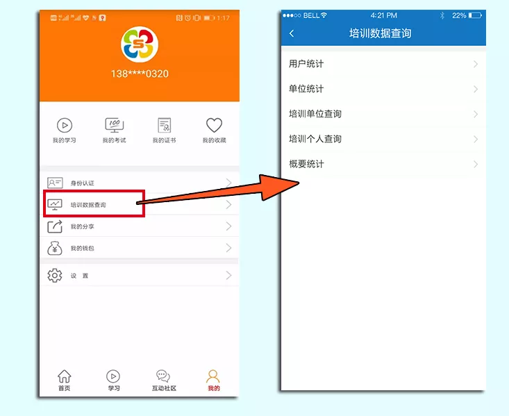 本功能僅對深圳市市場監(jiān)管局等簽約單位的監(jiān)管人員(須經(jīng)有效認(rèn)證后)開放,在首頁的【我的】中打開【培訓(xùn)數(shù)據(jù)查詢】,可查詢到各區(qū)、各街道、各單位和人員培訓(xùn)數(shù)據(jù)。
