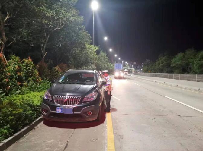 據(jù)“深圳交警權(quán)威發(fā)布”微信公眾號消息,2019年8月6日18時30分,黃某平無證駕駛粵B7K***黑色小型轎車從鹽田三洲田準備回家。19時48分許,途經(jīng)北山道—鹽田隧道路段時,遇到交警設(shè)卡查車,情急之下,黃某平立馬把車停在了應(yīng)急車道上。