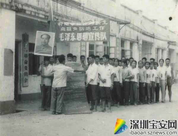 一張泛黃的老照片中,大多數(shù)人物都處在風(fēng)華正茂的年齡,赤著腳,舉著宣傳的橫幅,為血絲蟲病防治工作進行宣傳,生動地再現(xiàn)了“赤腳醫(yī)生”年代傳染病高居不下,生活艱苦不易,缺醫(yī)少藥的場景。盡管當(dāng)時的醫(yī)療設(shè)備十分簡陋,除了一個藥箱,幾片普通的藥片,一支針筒,幾塊紗布,別的就少得可憐??稍倏嘣匐y,這些赤腳醫(yī)生們,仍是盡職盡責(zé),滿腔熱情地為人民服務(wù)。