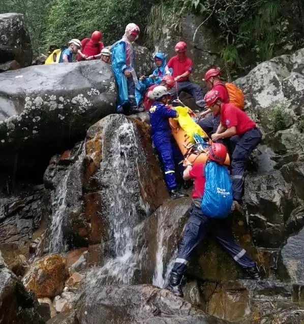 深圳藍天救援隊的2名隊友許挺秀、尹起賀,在掩護最后一批16名受困驢友撤離時,突遇溪水暴漲無法直接下山,為緊急避險而與大部隊脫離失聯(lián)。
