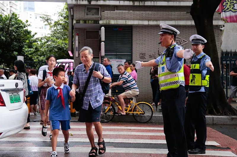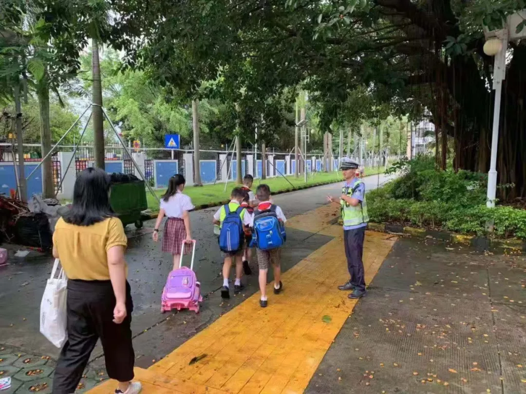 交警蜀黍?qū)⒌饺懈魉行W(xué)校
