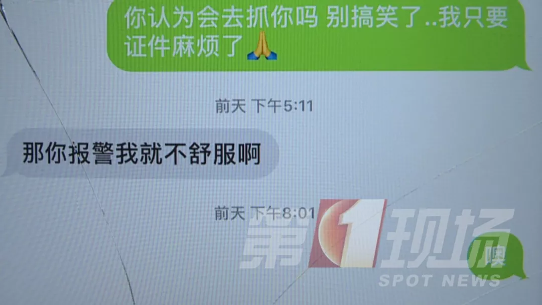 陳先生事主:我就說(shuō)錢(qián)你拿去,把證件還給我行不行,他居然說(shuō):“你報(bào)警我就不舒服了”,難道我報(bào)警還有錯(cuò)嗎?真的太猖狂了。