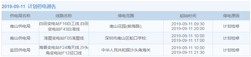 據(jù)中國(guó)南方電網(wǎng)最新消息,9月13日起至9月20日,深圳這部分地區(qū)要停電了!此前,晶報(bào)APP還報(bào)道了8月27日至9月12日深圳停電的情況:(8月27日至9月12日,深圳這些地方停電!快看影響你家沒(méi)),快來(lái)看看有沒(méi)有你家的吧。