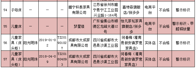 據(jù)悉,此次抽查不合格項(xiàng)目主要為警示標(biāo)識(shí)、結(jié)構(gòu)安全、甲醛釋放量等3項(xiàng)指標(biāo)。其中,警示標(biāo)識(shí)項(xiàng)目不合格的有53批次,結(jié)構(gòu)安全項(xiàng)目不合格的有27批次、甲醛釋放量項(xiàng)目不合格的有15批次。