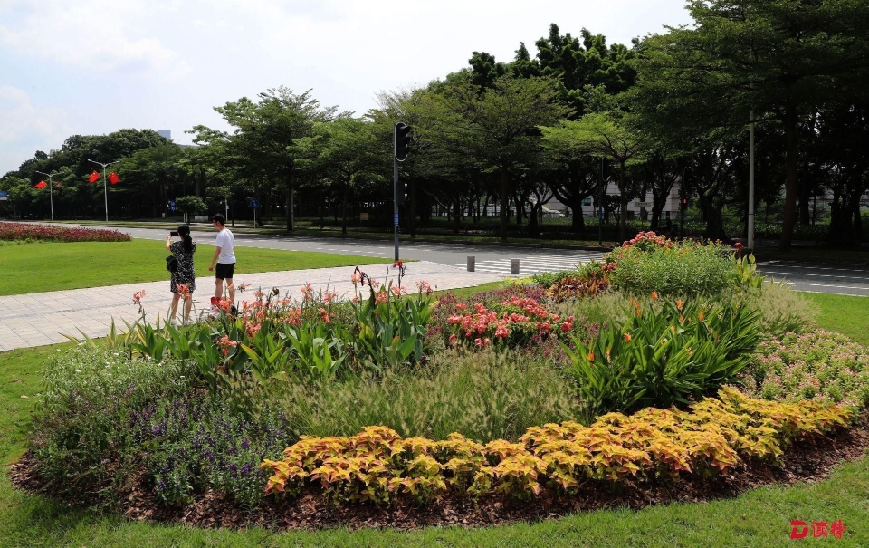 除了花帶,市城市管理和綜合執(zhí)法局還在深南大道行人過馬路的地方新打造了10個花園路口,每個小花園5-10平方米,結(jié)合原有路口的景觀設(shè)計,融入海綿生態(tài)理念,增加蜜源、觀花和色葉植物,組合成花境,讓在路口等紅綠燈的市民能欣賞到深圳的自然之美。