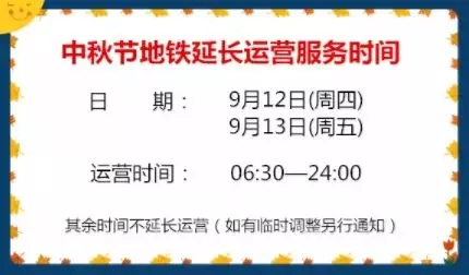 中秋節(jié)地鐵將延長運(yùn)營服務(wù)時(shí)間