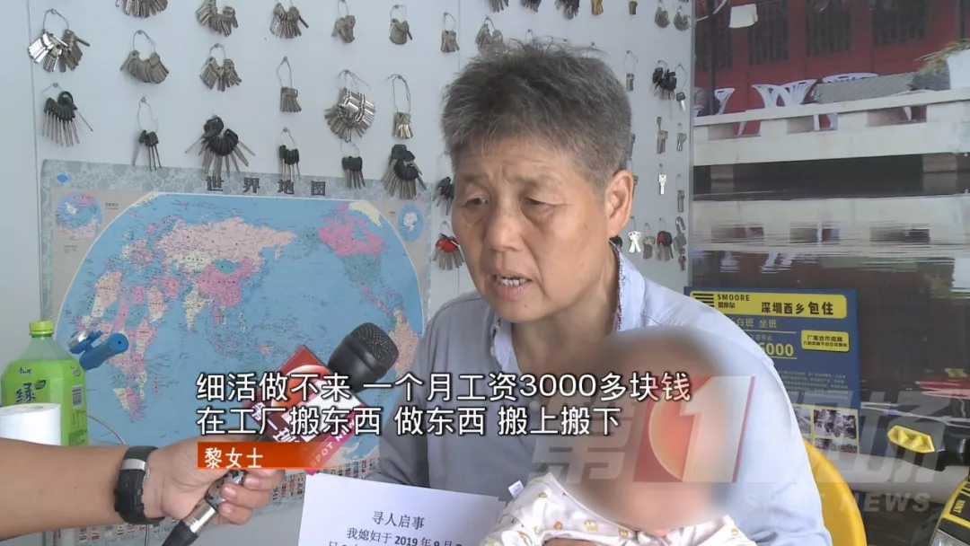 兒媳婦走失,那兒子怎么不過問呢?采訪中記者了解到,這家人情況特殊,他們老家在湖北,來深圳已經(jīng)十幾年了,黎女士老兩口育有一子一女,女兒情況正常,目前在深圳一工廠做文員。兒子今年31歲,從小智力略有缺陷,來深圳后有好心的工廠老板,給了他一份工作。