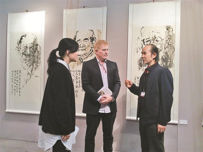 ▲2015,在“2015洛杉磯藝術博覽會”的中國國家展現(xiàn)場,莊玉君與觀展者交流。