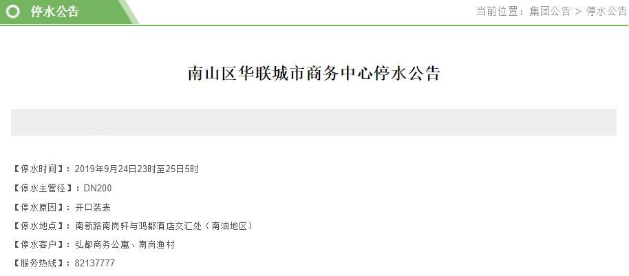 停水時(shí)間:2019年9月23日22時(shí)至24日7時(shí)