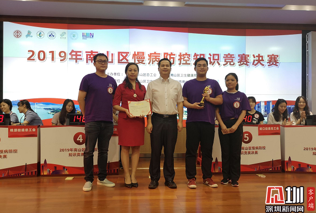 見(jiàn)圳客戶(hù)端·深圳新聞網(wǎng)2019年9月23日訊(見(jiàn)圳客戶(hù)端、深圳新聞網(wǎng)記者 劉夢(mèng)婷 通訊員 張媞)日前,一場(chǎng)“非專(zhuān)業(yè)”健康知識(shí)競(jìng)賽進(jìn)入決賽,參賽8支隊(duì)伍均來(lái)自非醫(yī)療衛(wèi)生專(zhuān)業(yè)人群。經(jīng)過(guò)激烈角逐,2019年南山區(qū)慢病防控知識(shí)競(jìng)賽圓滿(mǎn)落幕,西麗街道總工會(huì)代表隊(duì)奪冠。