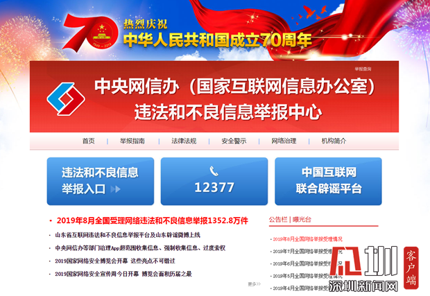 圖為www.12377.cn 首頁截圖。