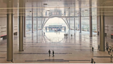深圳國際會展中心嚴(yán)把質(zhì)量關(guān),僅3年就完工,創(chuàng)造了會展中心建設(shè)的“深圳速度”。圖為北登錄大廳。