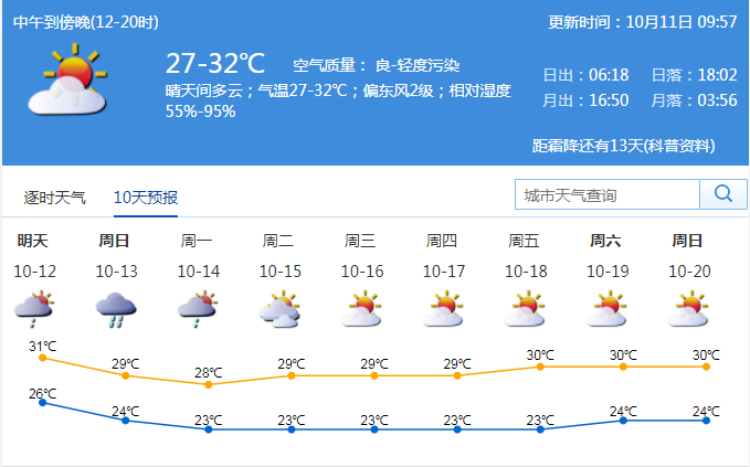 見圳客戶端·深圳新聞網(wǎng)2019年10月11日訊 據(jù)深圳市氣象局消息,今日深圳晴天間多云;氣溫27-32℃;偏東風(fēng)2級;相對濕度55%-95%