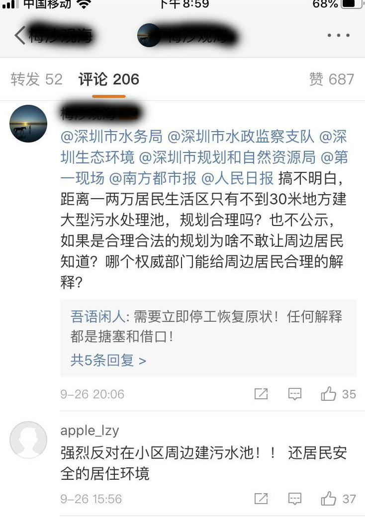 深圳特區(qū)報2019年10月11日訊 “南山寶珠花園、龍都名園附近距離小區(qū)不到30米建大型污水處理池,規(guī)劃部門怎么想的,不怕周圍居民不答應(yīng)嗎?考慮過周邊居民的健康嗎?”近日,有市民在微博發(fā)文向媒體報料。