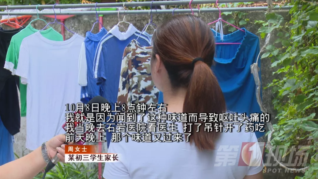 周女士的孩子在該校讀初三,在聞到類(lèi)似“燒塑膠品”的味道后,還出現(xiàn)了嘔吐、頭暈、嘴麻木的癥狀,不得不去醫(yī)院打吊針。