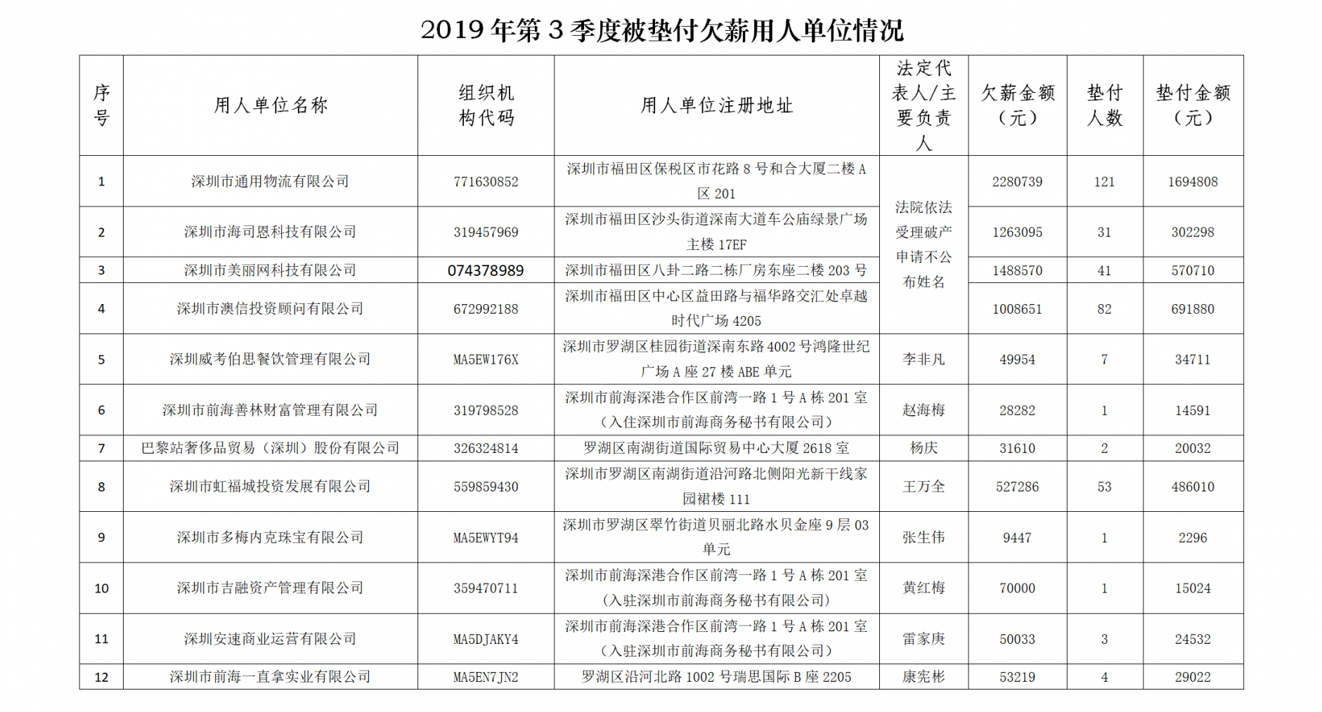 原標(biāo)題:最高拖欠565萬余元!深圳曝光3季度33家被墊付欠薪企業(yè)