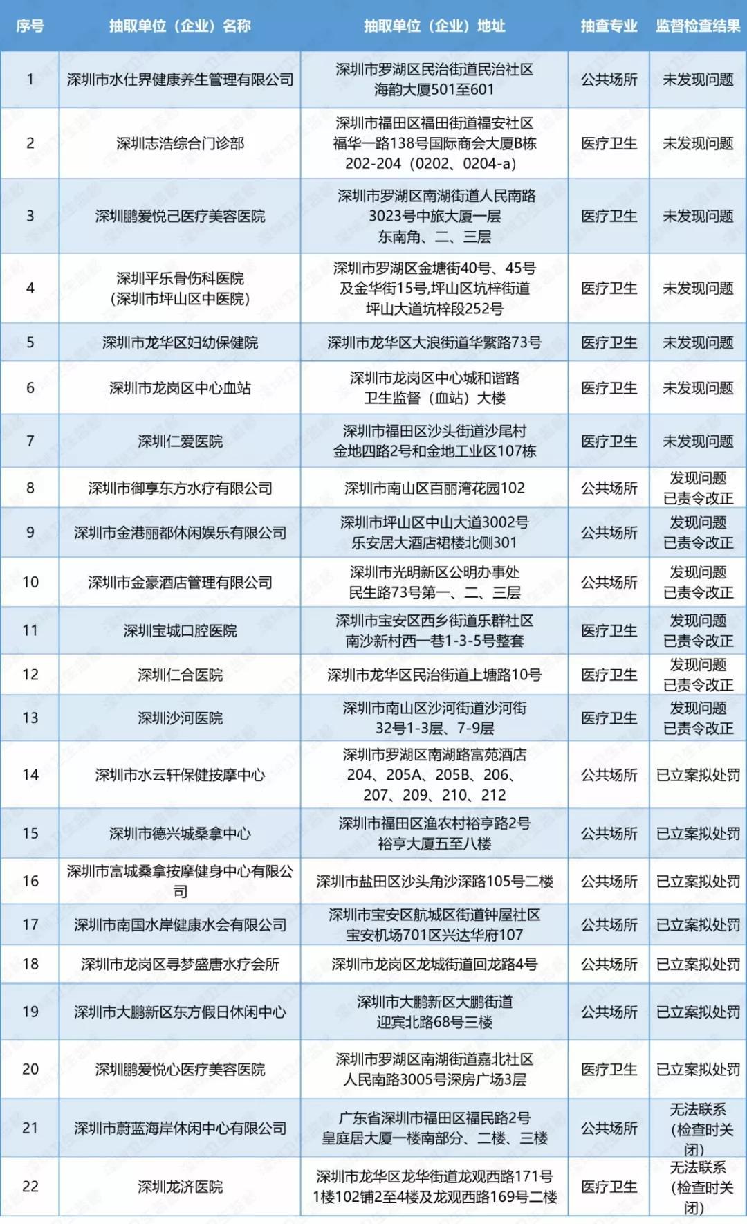 此次檢查通過“深圳市衛(wèi)生監(jiān)督雙隨機抽查管理系統(tǒng)”,隨機抽取檢查人員、檢查對象,采取跨區(qū)交叉檢查的方式。執(zhí)行雙隨機抽查任務(wù)的執(zhí)法人員均佩戴執(zhí)法記錄儀,并通過信息系統(tǒng),將檢查發(fā)現(xiàn)的問題及時反饋至具有管轄權(quán)的衛(wèi)生監(jiān)督機構(gòu)跟進處理。