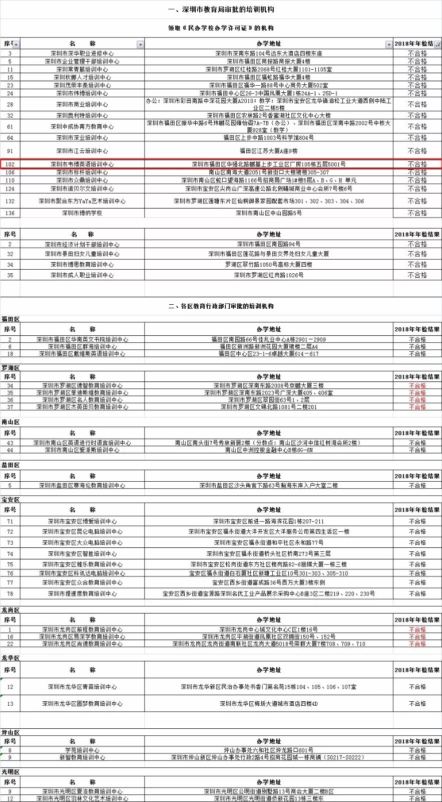 分別是位于羅湖遠東大酒店的深華職業(yè)進修中心、羅湖紅桂大廈的深圳市常青藤培訓(xùn)中心、市科學(xué)館的深業(yè)培訓(xùn)中心、翠竹路的博思教育培訓(xùn)中心,這些培訓(xùn)機構(gòu)也都早已無影無蹤。