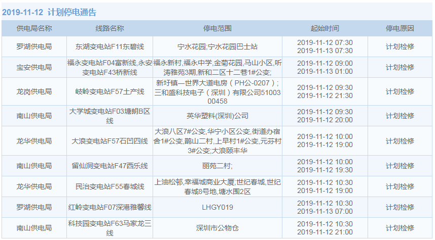 11月1日-15日,深圳這些地方將停電(附全名單)