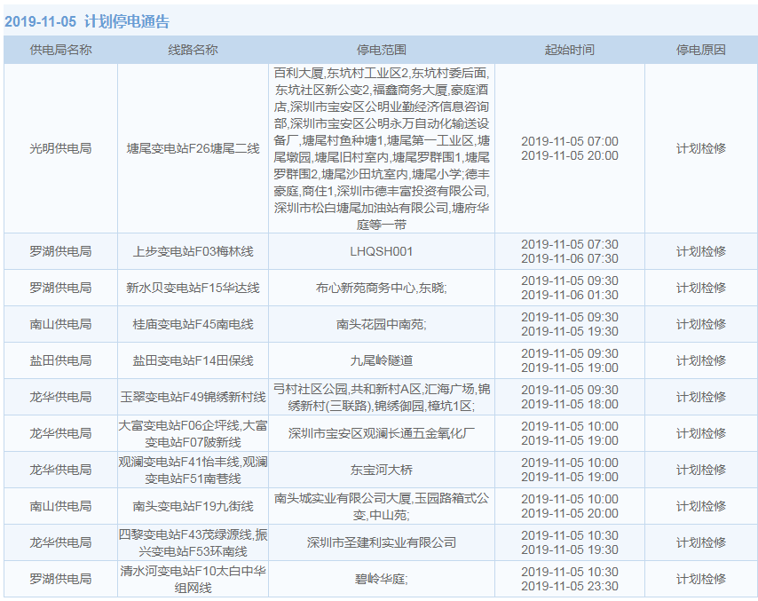 11月1日-15日,深圳這些地方將停電(附全名單)