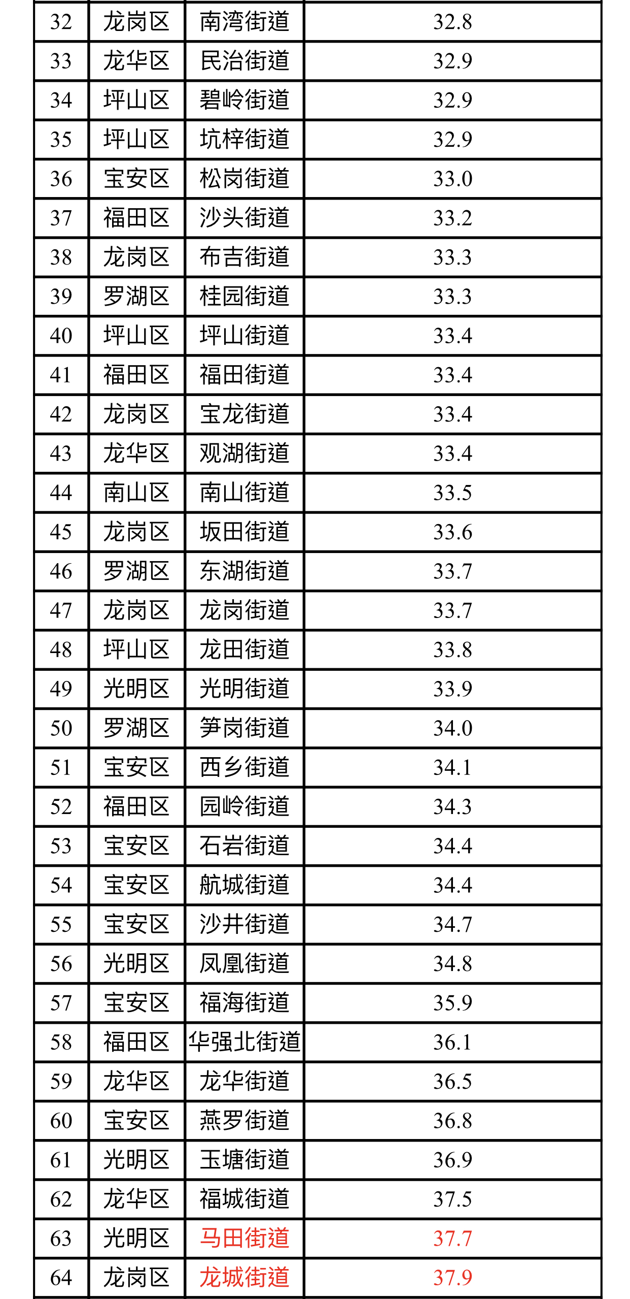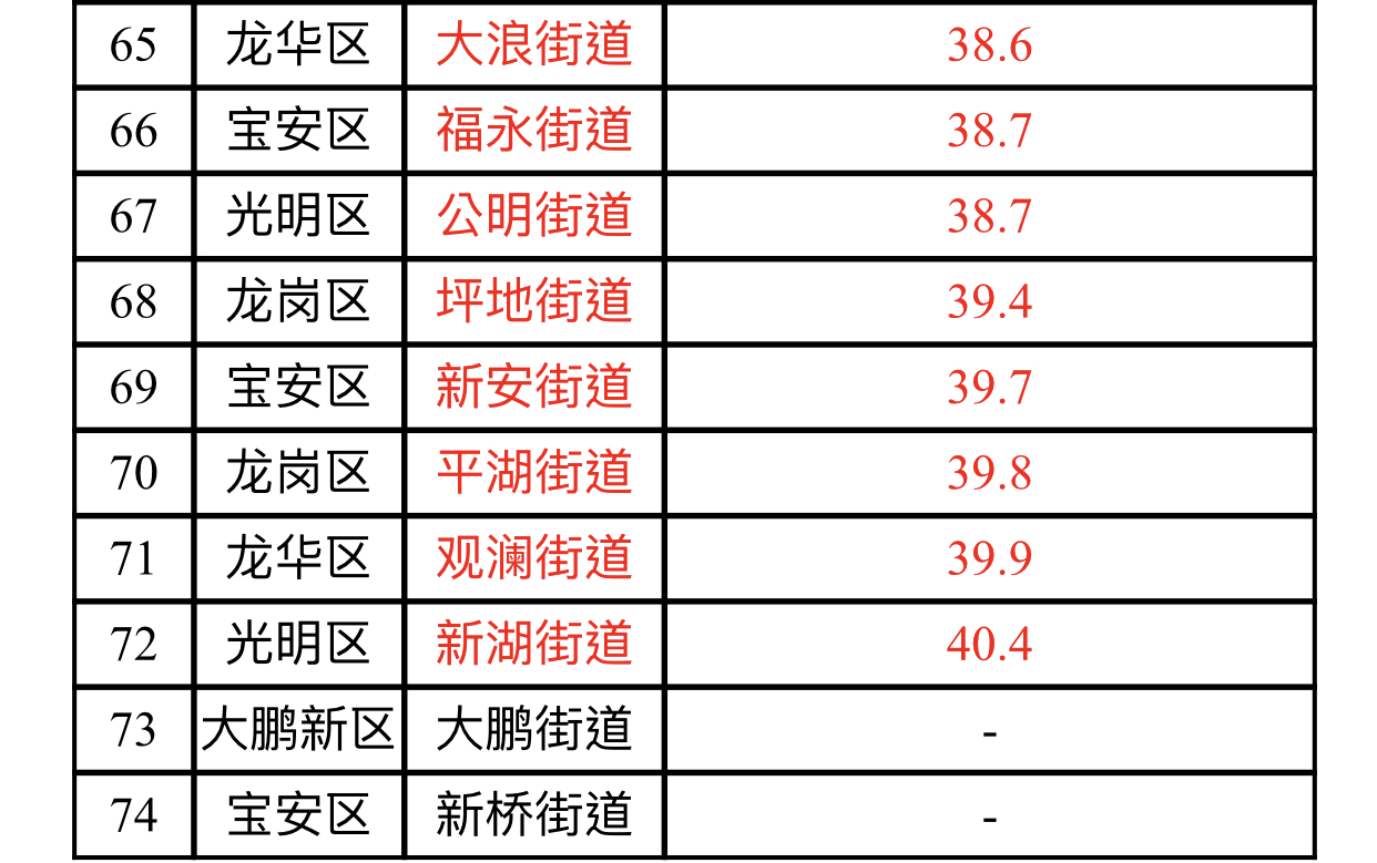 見圳客戶端·深圳新聞網(wǎng)2019年11月5日訊(見圳客戶端、深圳新聞網(wǎng)記者陳婕)11月5日,記者從深圳市生態(tài)環(huán)境局了解到,2019年10月,全市74個街道PM2.5濃度在25.7-40.4微克/立方米之間,均值為33.3微克/立方米。排名前十的是:南澳、海山、桃源、橫崗、鹽田、南湖、沙頭角、蓮塘、蛇口和黃貝等街道,排名倒數(shù)前十的是:新湖、觀瀾、平湖、新安、坪地、公明、福永、大浪、龍城和馬田等街道。