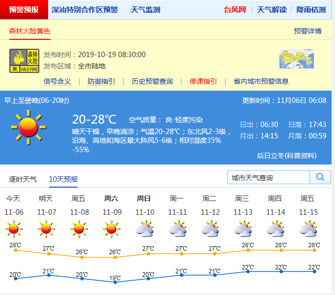 見圳客戶端·深圳新聞網(wǎng)2019年11月6日訊 近幾日,深圳天氣早晚清涼,持續(xù)干燥。據(jù)“深圳天氣”官方微博消息,今天(11月6日),深圳晴天干燥;氣溫20-28℃;東北風(fēng)2-3級;相對濕度35%-55%。