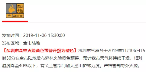 深圳市氣象臺已于昨日(6日)15時(shí)30分將森林火險(xiǎn)黃色預(yù)警升級為橙色。各位小伙伴一定要記得,居家或外出注意防火和安全用火。