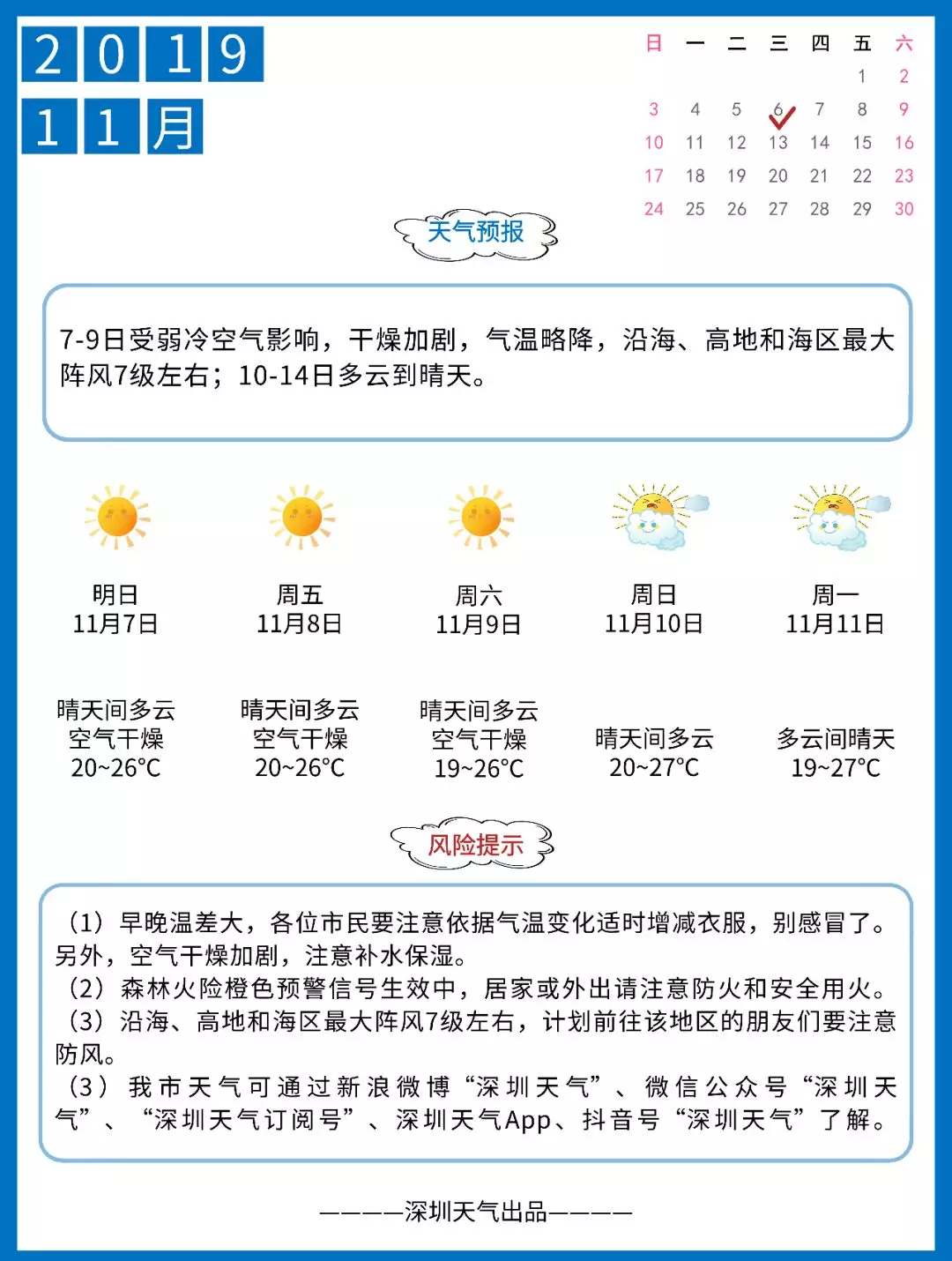 預(yù)計(jì)11月天氣較平穩(wěn),降水偏少,空氣干燥,早晚溫差較大。由于大氣擴(kuò)散氣象條件較差,部分地區(qū)可能會(huì)出現(xiàn)灰霾天氣。雖然目前深圳的冷空氣,好像都不太給力,但是降溫這事誰(shuí)說得準(zhǔn)呢,所以,要注意增添衣物啊~