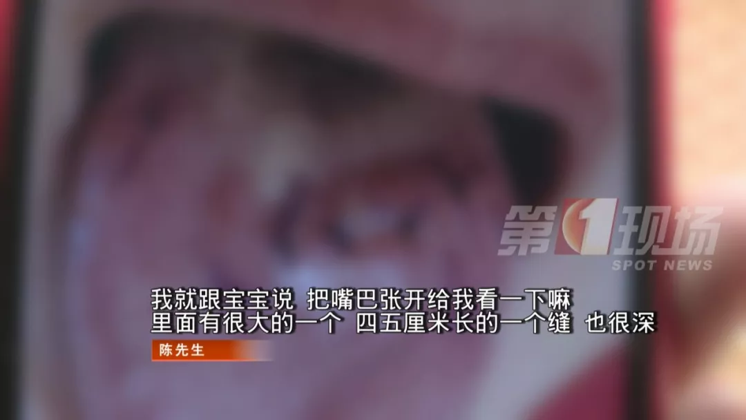 陳先生發(fā)現(xiàn)孩子舌頭上有一條傷口,如果真的像老師說的一樣,孩子是咳嗽咳出血的,那怎么會有傷口呢?