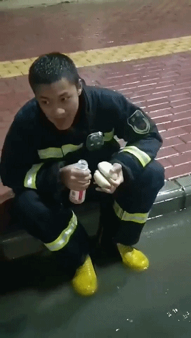 8月,一位消防員在排澇的間隙