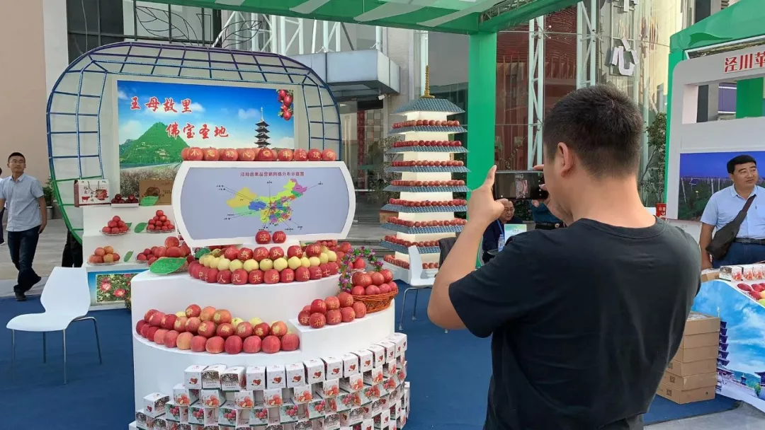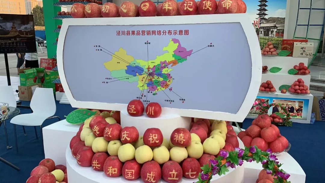 涇川縣的展位,展示了該縣果品營銷網(wǎng)絡(luò)分布示意圖。