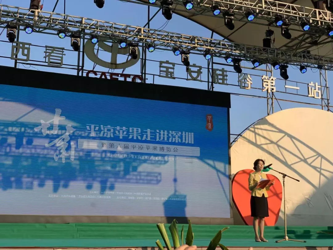 深圳市政協(xié)副主席王璞、深圳市委網(wǎng)信辦副主任王遠(yuǎn)輝、平?jīng)鍪形睍涶R琨、寶安區(qū)人大常委會副主任劉紅瑛、寶安區(qū)沙井街道辦黨工委書記詹輝以及中國果品流通協(xié)會副會長兼秘書長張慶豐、中國蘋果產(chǎn)業(yè)協(xié)會秘書長高繼海、深圳市甘肅商會黨委書記蔣曉林共同啟動了甘肅平?jīng)鎏O果走進(jìn)深圳暨第六屆平?jīng)鎏O果博覽會。