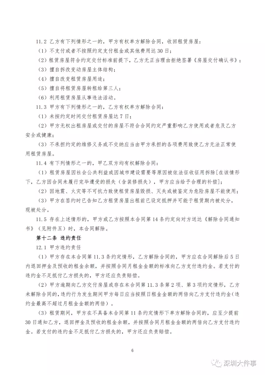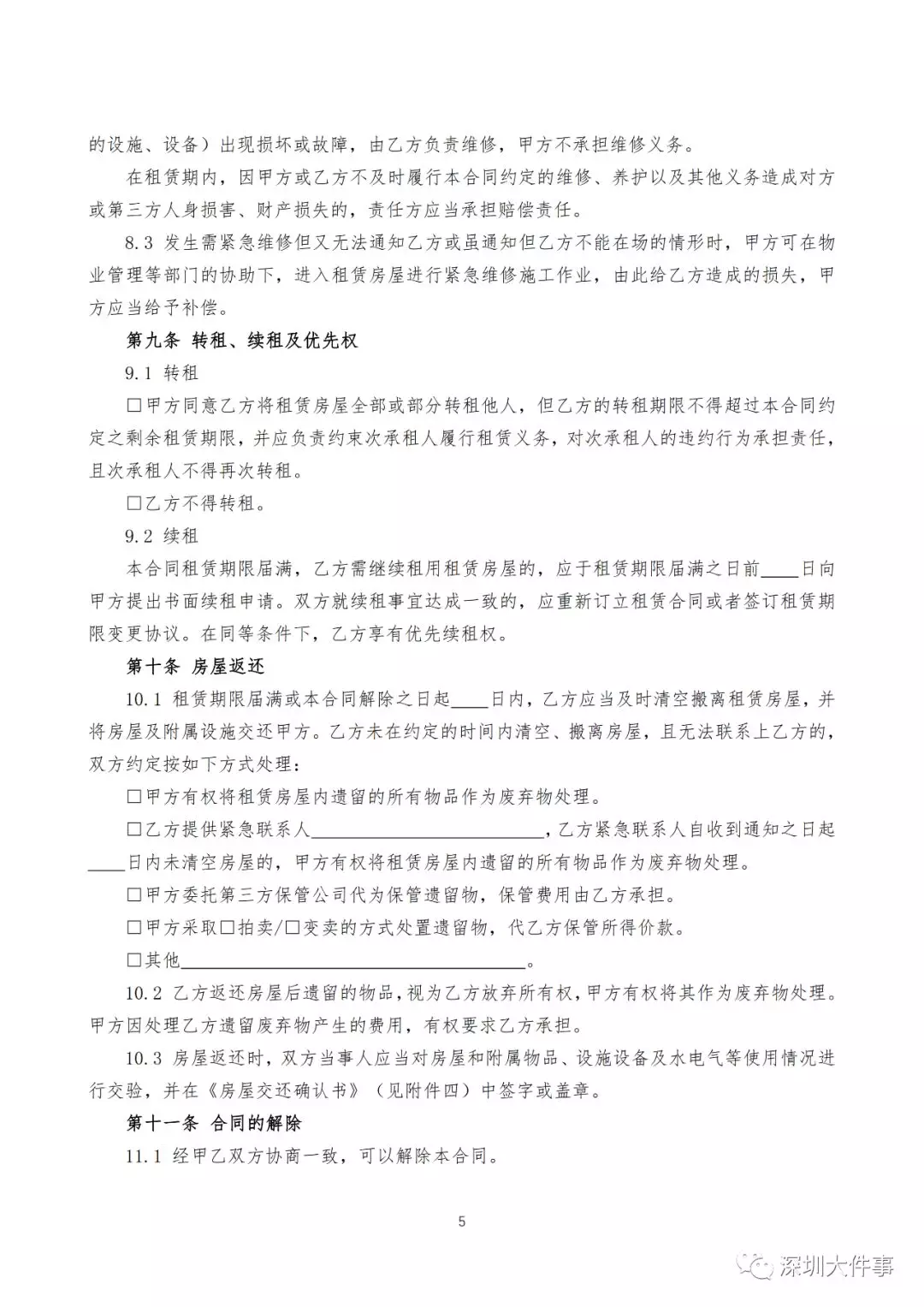 7、強(qiáng)化落實房屋安全主體責(zé)任,新版合同保留了舊版合同附件《深圳市房屋租賃安全管理責(zé)任書》,要求租賃雙方當(dāng)事人必須簽訂該責(zé)任書,否則房屋租賃主管部門不受理合同登記備案。